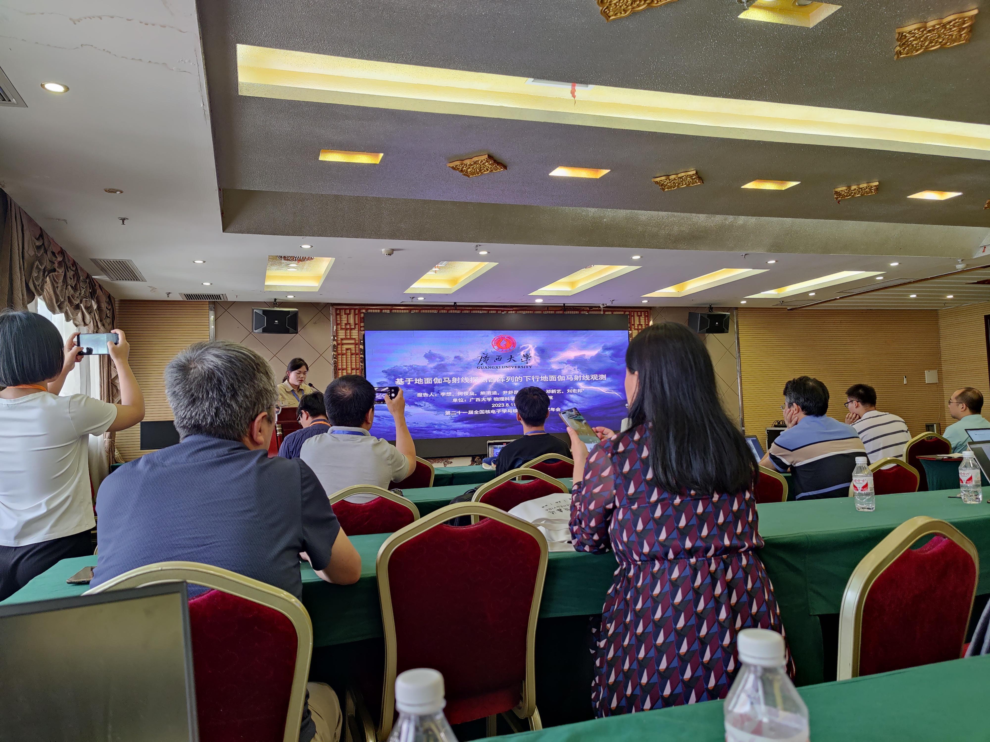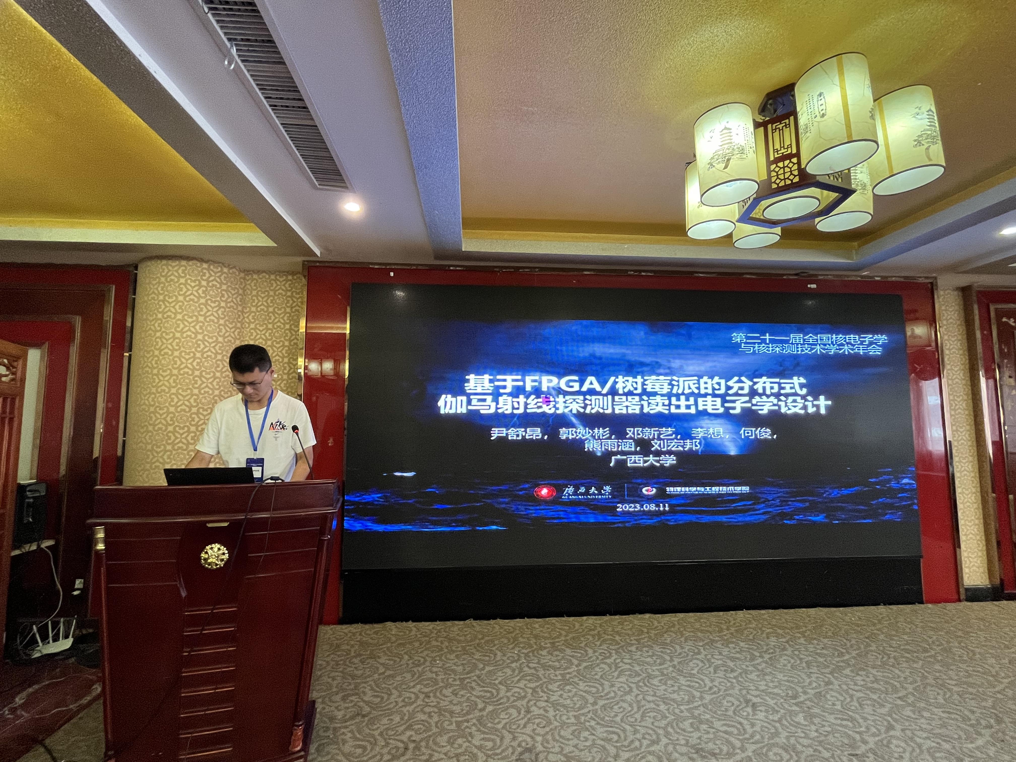 2023年8月9日至11日,第二十一届全国核电子学与核探测技术学术年会在湖北恩施召开。来自全国各地的近400名专家学者、科技工作者及研究生参加了会议,并对核电子学、核探测技术的相关研究领域进行了深入研讨和交流。由我院2020级本科生李想、尹舒昂参加会议并就所开展的大学生创新训练计划项目《地面伽马射线探测器阵列研究项目》研究进展作分会口头报告,指导老师为学院刘宏邦教授。