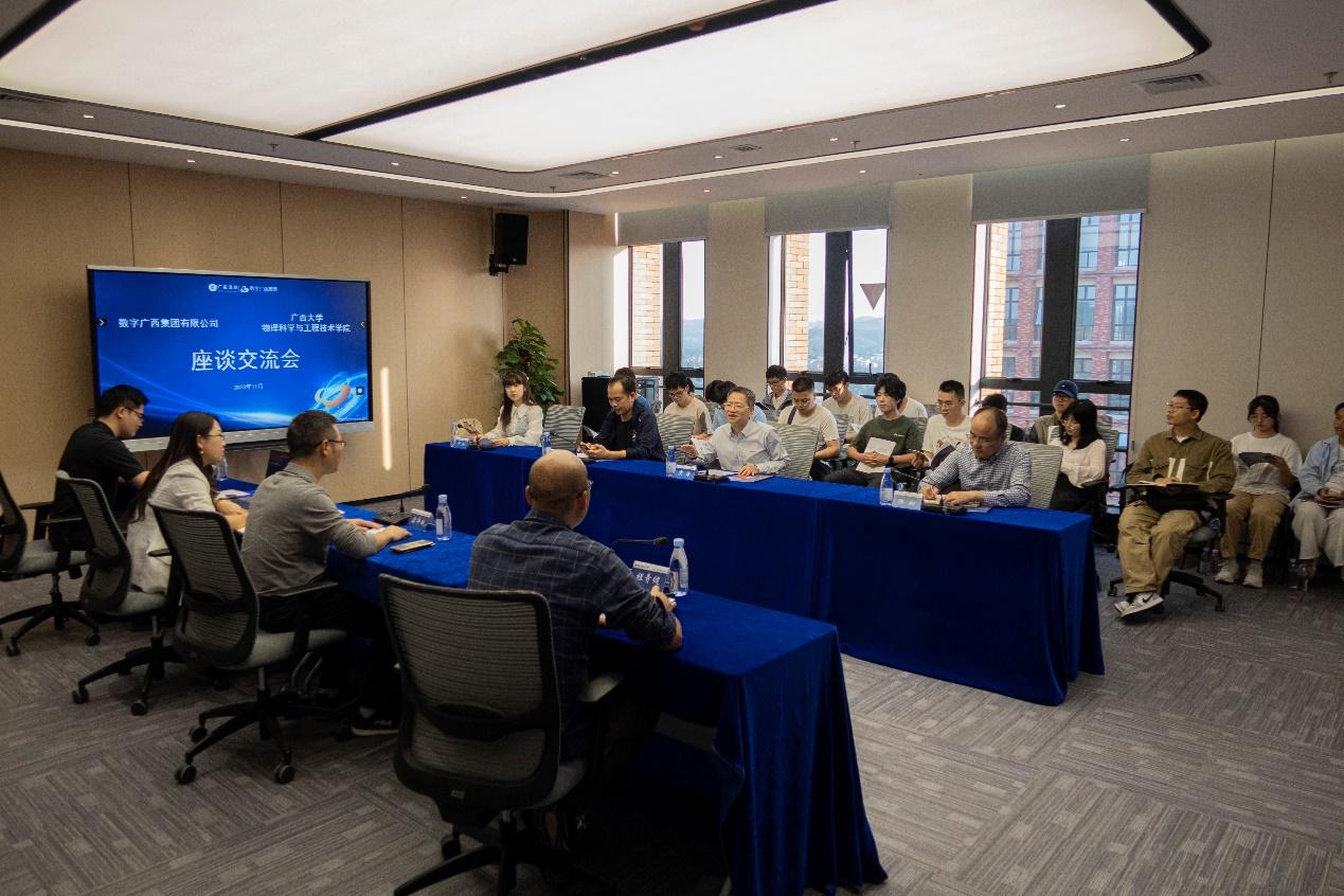 当代中国青年是与新时代同向同行、共同前进的一代,生逢盛世,肩负重任!数字广西集团运用大数据、数字孪生、人工智能等技术,大力发展平台经济新业态、新模式,有效激发数据要素潜能,助推多个领域向高端化、智能化发展。对于企业的第三代半导体产业及未来拓展领域,袁涛书记提出了希望能够与企业进行联合培养学生们的实践能力,能够把所学理论知识加以应用。