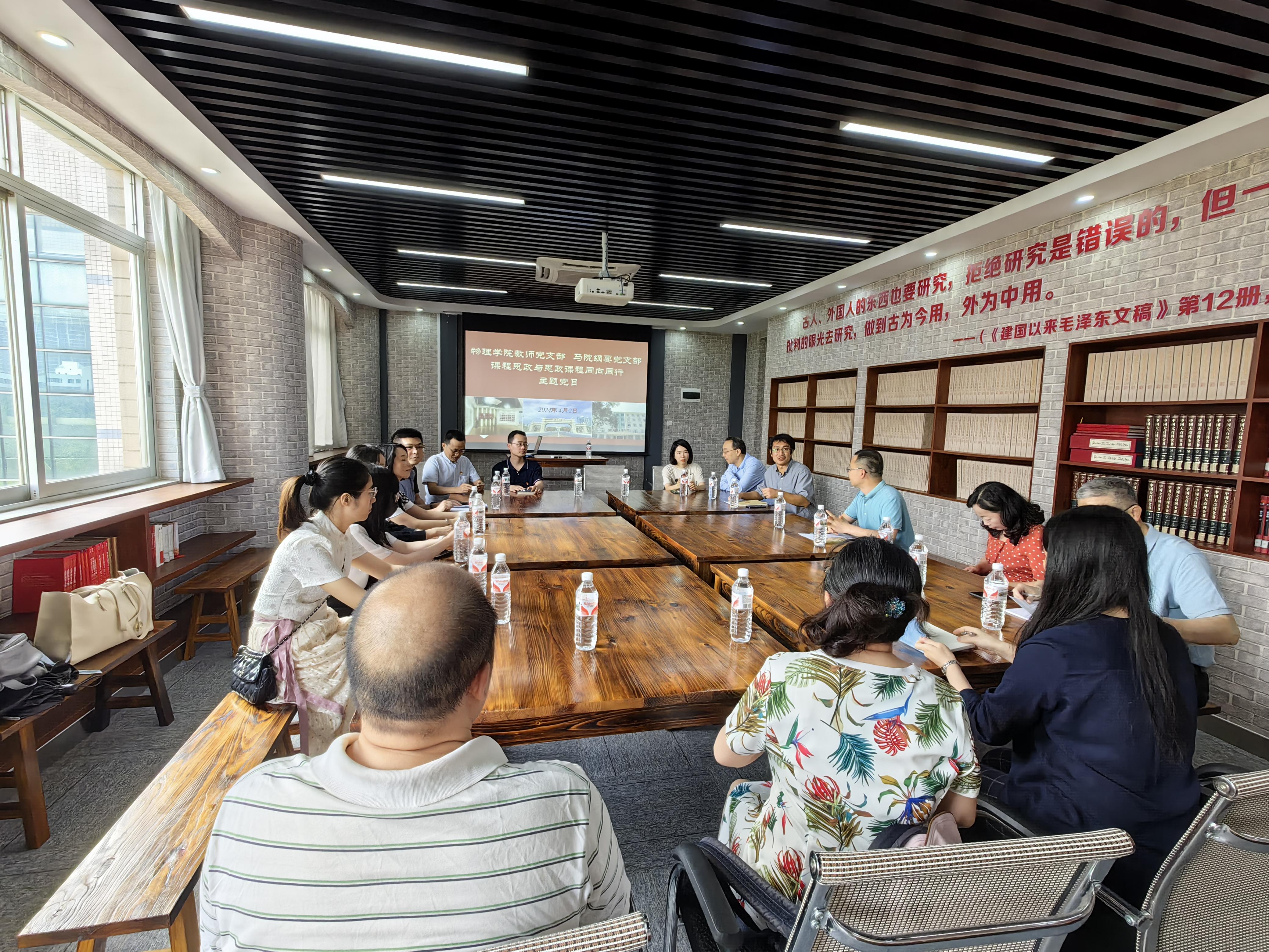 4月2日下午,我院光电材料教工党支部与马院纲要党支部在马院毛泽东书屋,联合举行“课程思政与思政课程同向同行”主题党日活动。本次主题党日活动旨在加强不同学科背景教师之间的课程思政工作交流、经验分享与相互促进,就如何更好地提高课程教学质量展开探讨。