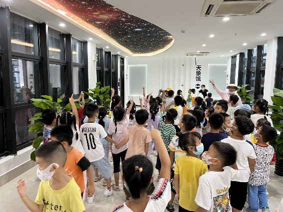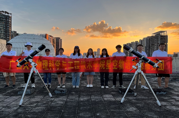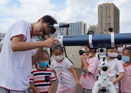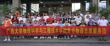为了深入学习习近平总书记系列重要讲话精神,以实际行动迎接党的二十大胜利召开,提高大学生社会实践能力和志愿服务意识,在社会实践的大课堂中 “受教育、长才干、作贡献”,7月11日-7月13日,我院星空物语志愿服务团以饱满的精神状态和认真负责的态度,依托学院天象馆开展了一系列天文科普活动。先后接待了那坡县中小学优秀学子、西大第一附属幼儿园,组织了“超级月亮”观测活动等,服务了超过1000人次,在轻松愉快的氛围中让师生们感受到科研之美、宇宙之美。