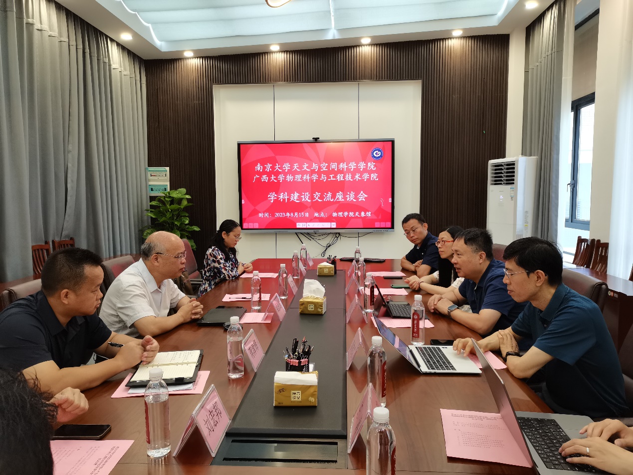 8月15日,南京大学天文与空间科学学院党委书记顾秋生、院长李向东率党政领导班子一行6人到我院调研学科建设、人才培养等工作。校党委常委、副校长、物理学院院长梁恩维参加调研活动,学院党委书记袁涛主持座谈会。