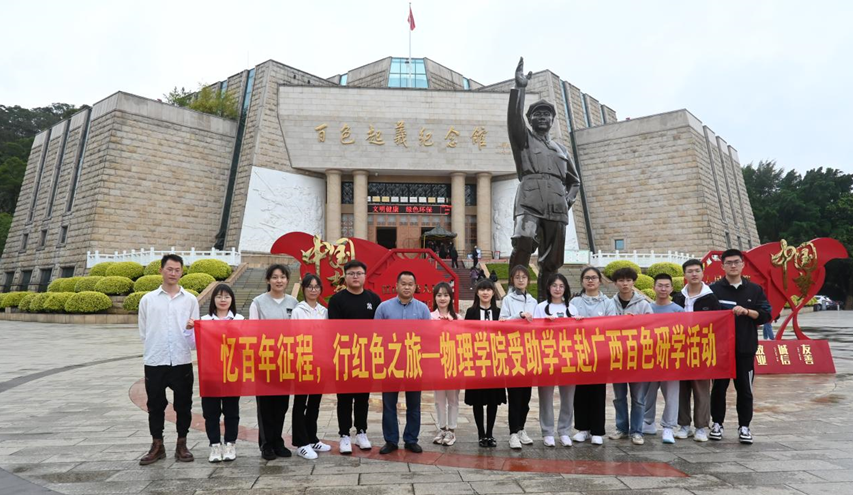 为深入学习宣传贯彻党的二十大精神,进一步激发我院学生坚定理想信念,帮助学生拓展视野、提升素养,3月3日-3月4日,我院组织了部分师生赴广西百色市开展了以“忆百年征程·行红色之旅”为主题的资助育人研学活动。活动由党委副书记蒋津辉、辅导员于丹、龙思宇、石城宇、周小琦带队,14名学生参加。