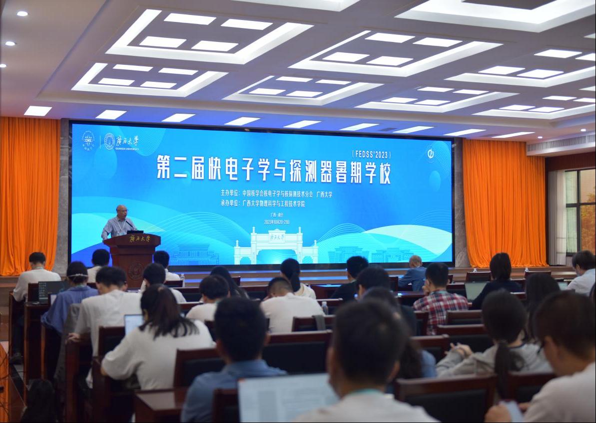 本届暑期学校邀请来自法国国家科学研究中心、清华大学、中国科学技术大学、中科院微电子研究所、东南大学等单位的知名专家进行授课,共有来自中国科学院高能物理研究所、中国科学技术大学、中国科学院近代物理研究所、西北核技术研究所、中国原子能科学研究院、华中师范大学、清华大学、山东大学、太阳成tyc7111cc等多个科研院所及高校的110多名学员参加。我校党委常委、副校长梁恩维出席开幕式并致辞,原太阳成tyc7111cc校长郑志鹏作大会特邀报告。