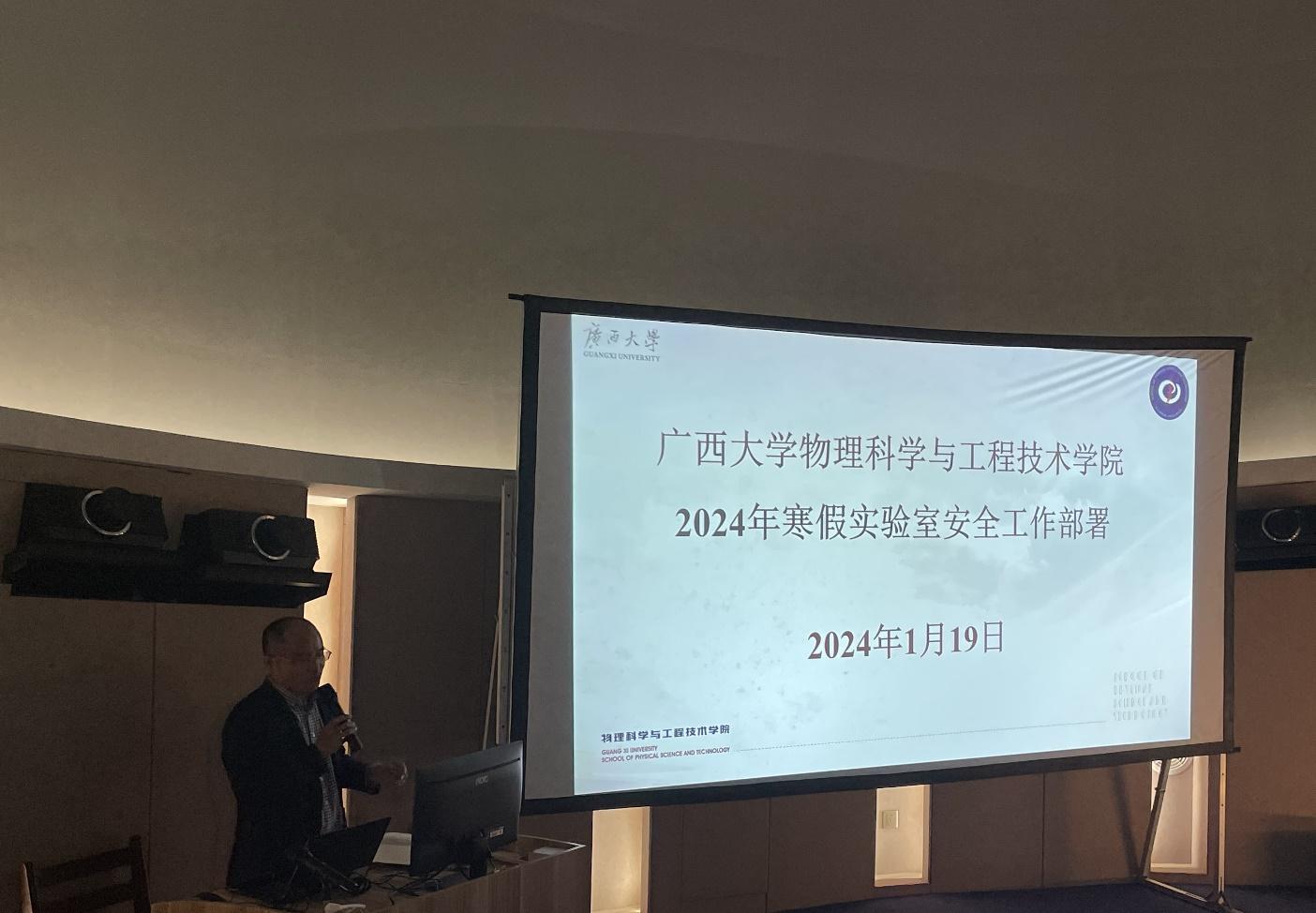2024年1月19日,我院召开全院教职工暨期末大会,陆副院长对我院本学期的实验室安全工作做了总结,并部署了寒假期间的安全工作要求,要求各实验室做好假期使用报备、值班巡查、实验室封闭等安全防范工作。