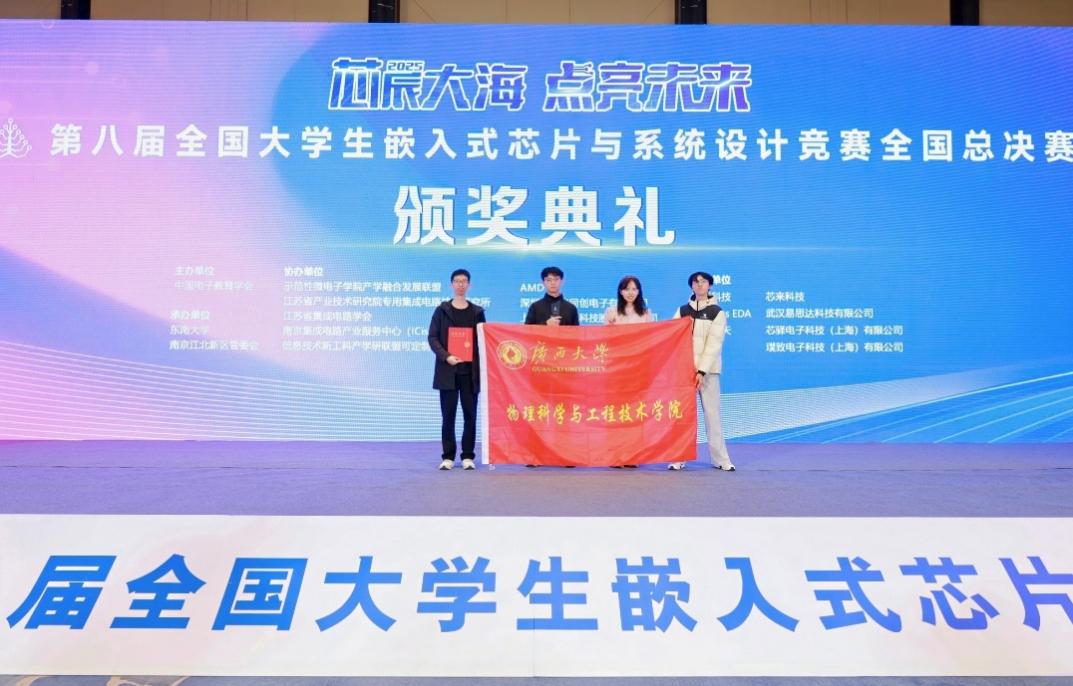 近日,第八届全国大学生嵌入式芯片与系统FPGA创新设计赛在南京集成电路培训基地举办。我院参赛队经过激烈角逐,斩获全国一等奖1项、三等奖2项,并成功问鼎“安路科技杯”企业大奖,该奖项仅授予五大企业赛道评选出的最佳队伍,创下自赛事举办以来广西高校的最好成绩。
