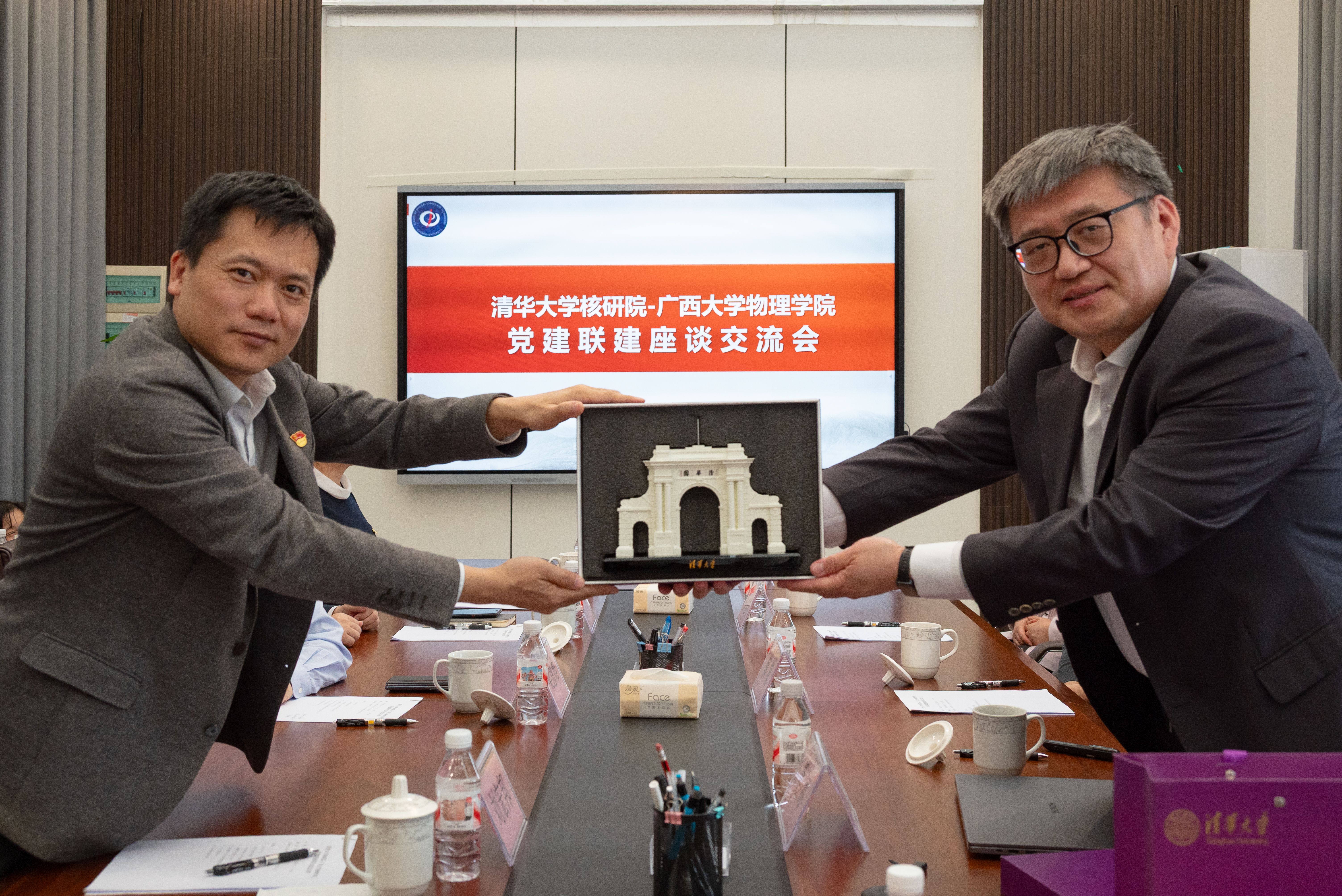 梁恩维对清华大学核研院103室党支部一行的到来表示热烈欢迎,对核研院在党建引领科研攻关、人才培养等方面取得的突出成效给予高度评价。他指出,此次联学联建是优质党建资源的双向对接,更是样板支部互学互鉴、共促提升的重要契机。清华核研院传承的“235精神”是凝聚科研力量、践行报国初心的宝贵精神财富,希望物理学院深入学习借鉴,将精神力量转化为学科发展的实际行动。结合广西钍资源区位优势,梁恩维希望双方以此次联学联建为纽带,在钍等关键金属与核能材料研究领域深化有组织科研合作,在人才联合培养、师资互访交流、科研团队共建等方面搭建长效合作平台,推动党建与学科发展深度融合,实现优势互补、共赢发展。