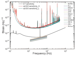 图二 不同状态方程下,CDF-S XT2引力波辐射随频率的变化