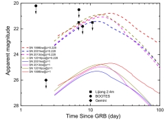 图二 GRB 211227A光学观测极限与同一距离处已知超新星亮度比较